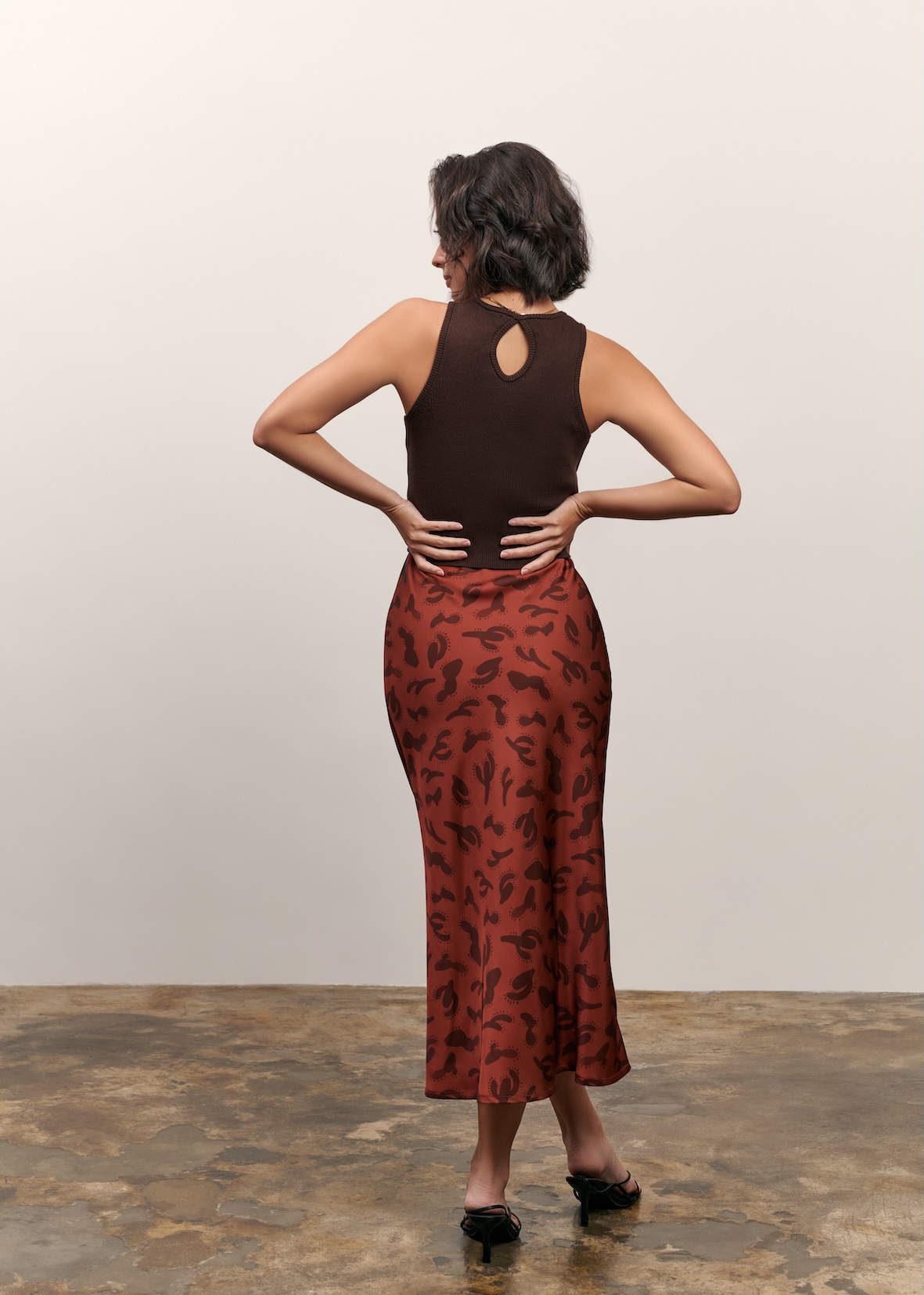 Parallel 51, Olivia Slip Skirt Burnt Cactus Print - S