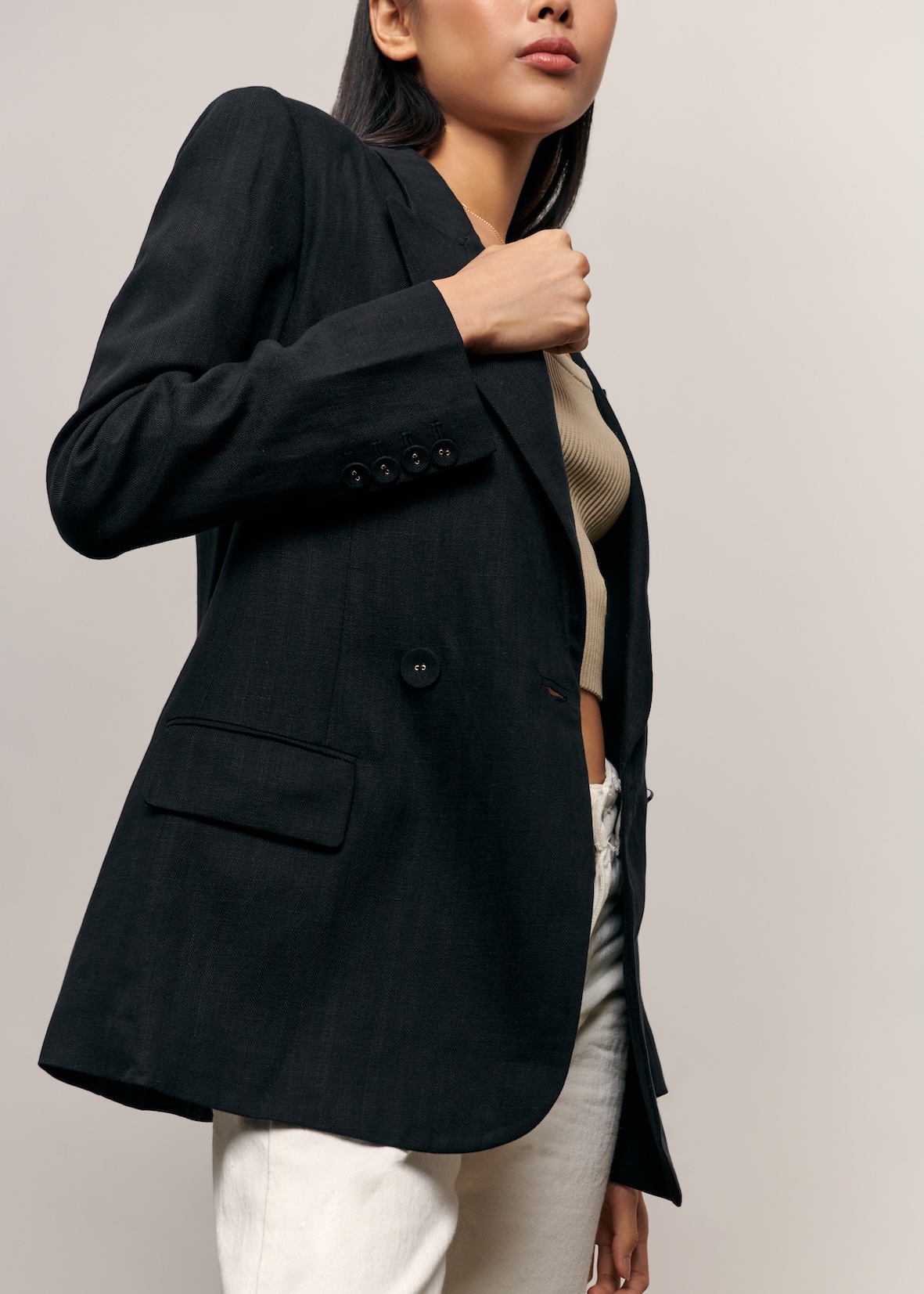 Parallel 51, Erin Linen Blazer Black - XS