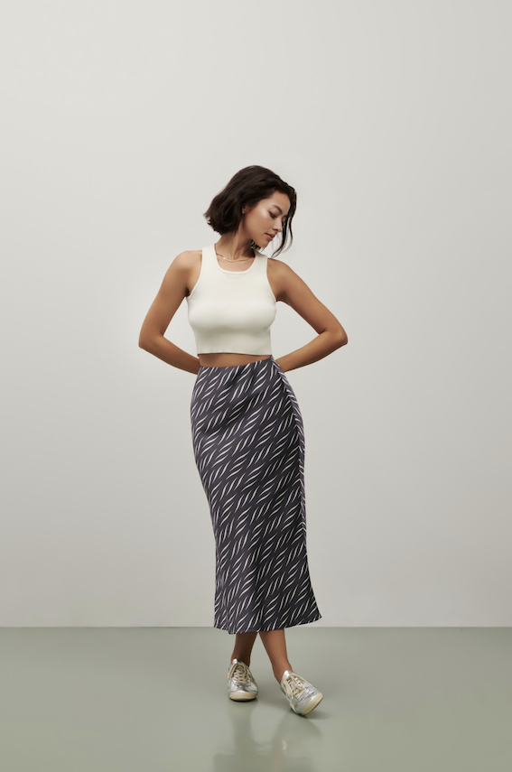 Parallel 51, Olivia Slip Skirt Grey Lines Print - M
