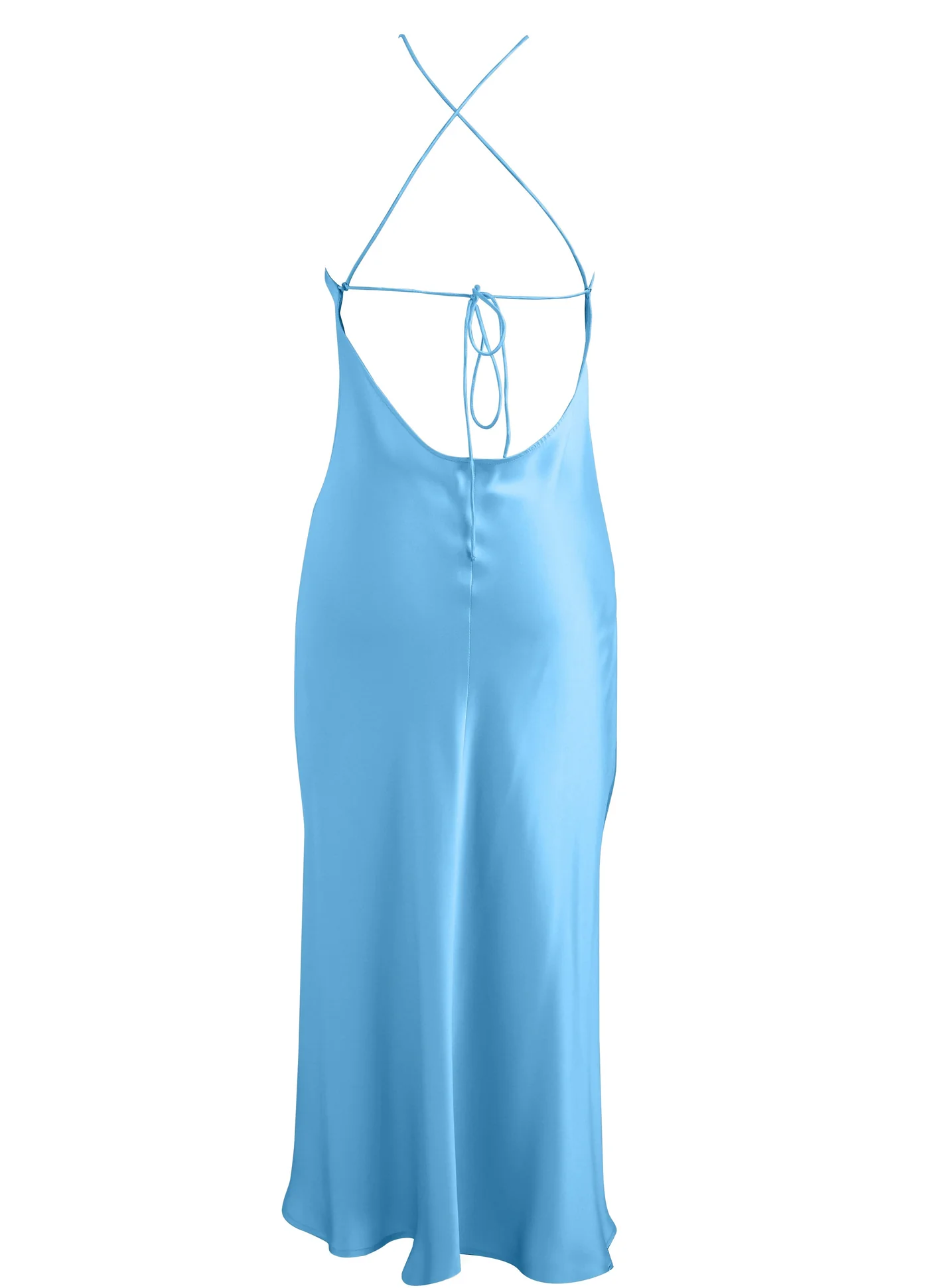 Description: Inspired by the iconic styles of the 00s. Halter neckline with double lining to the waist. This classic piece offers multiple ways to tie, allowing for a customisable fit and look. Sandwashed 16momme 100% Silk