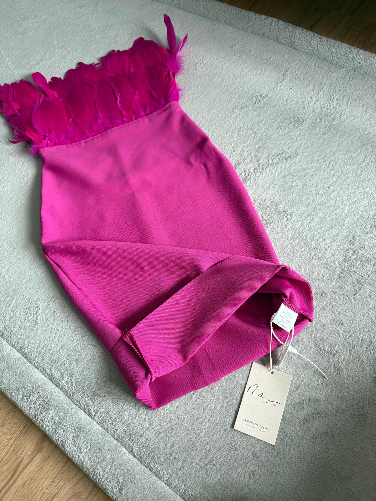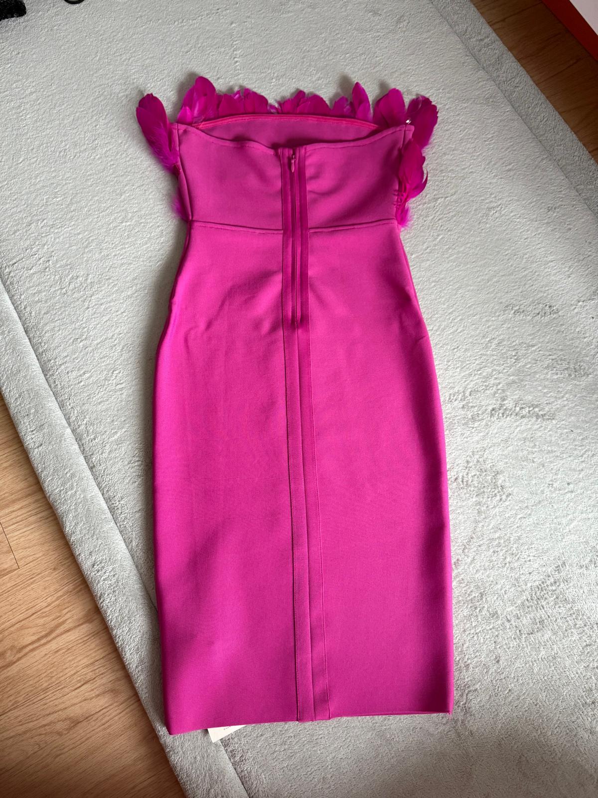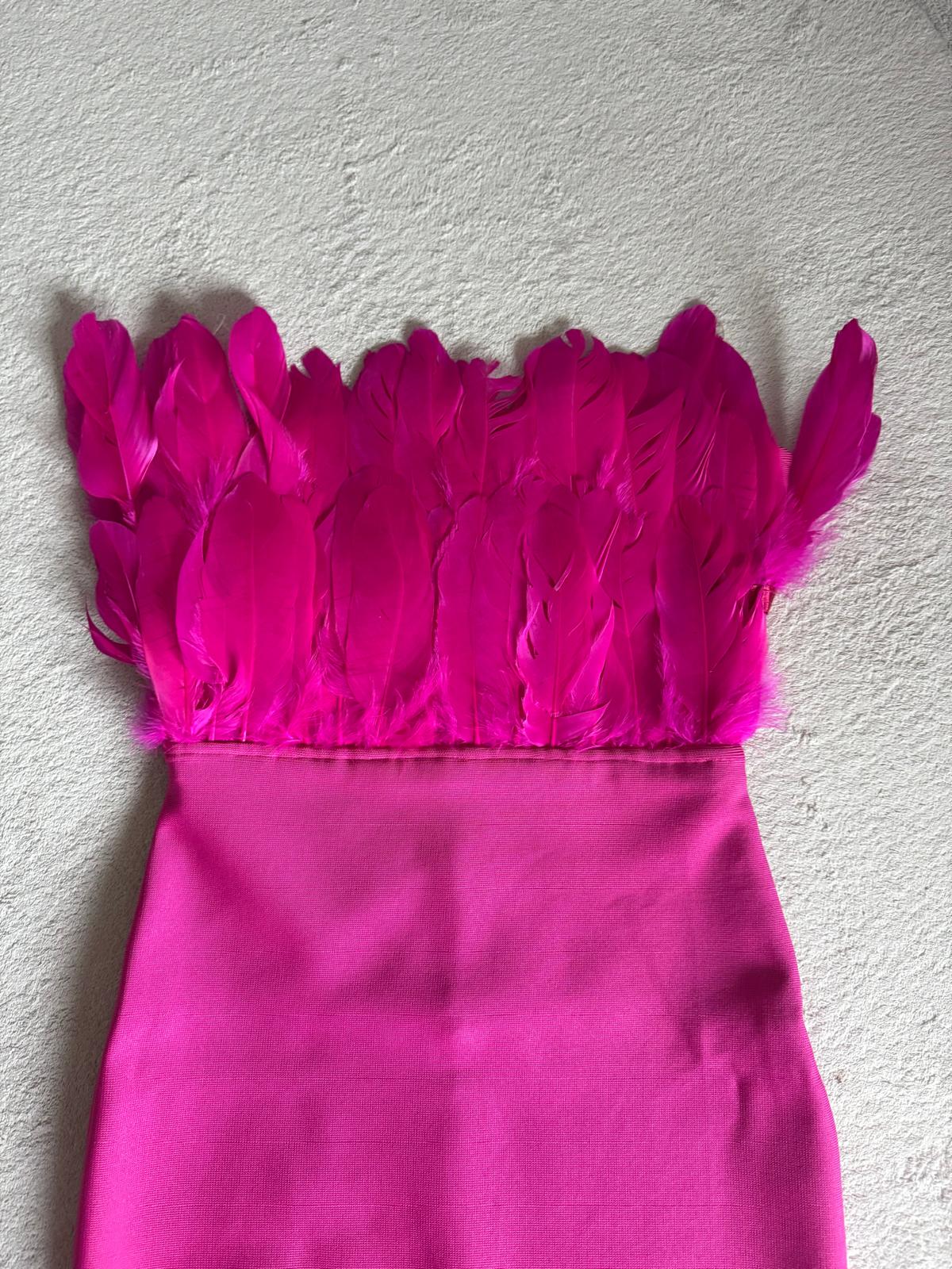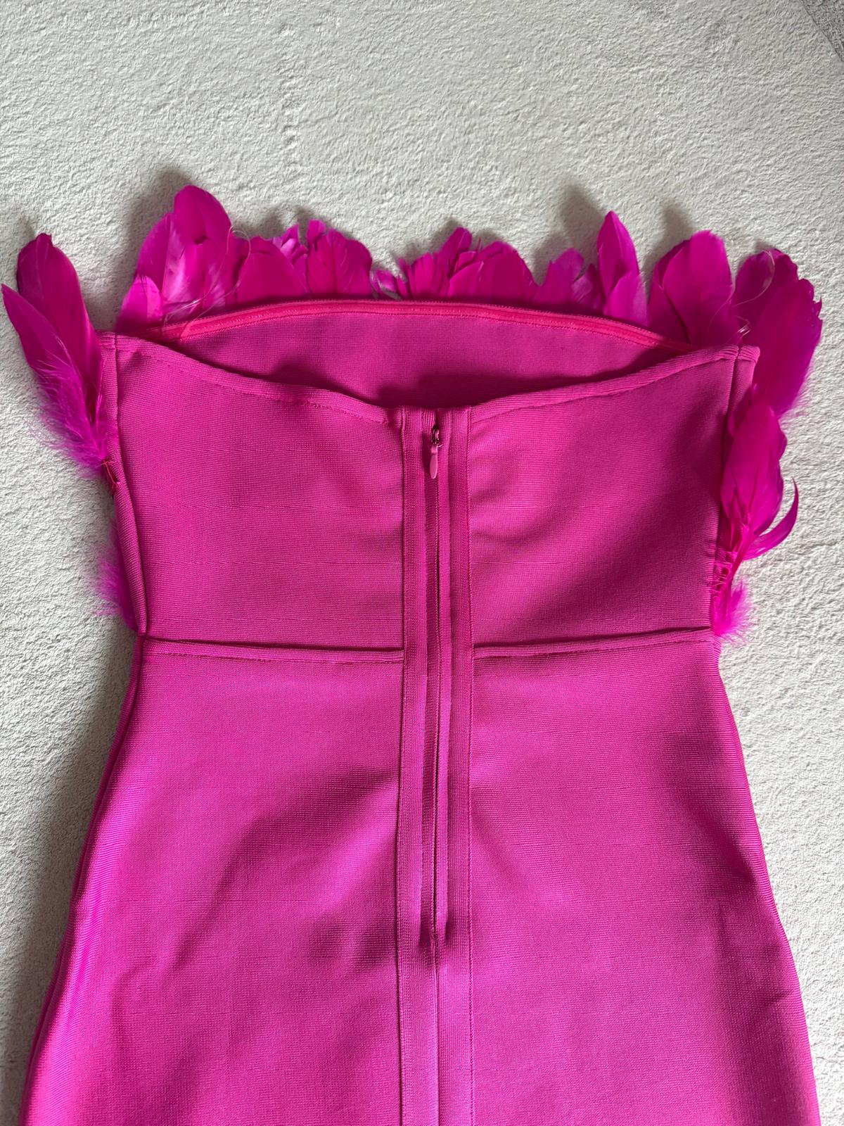 Description: Fuscia feather top bodycon dress (Brand new with tags) Perfect for the festive season. Size M from Mew Mews.