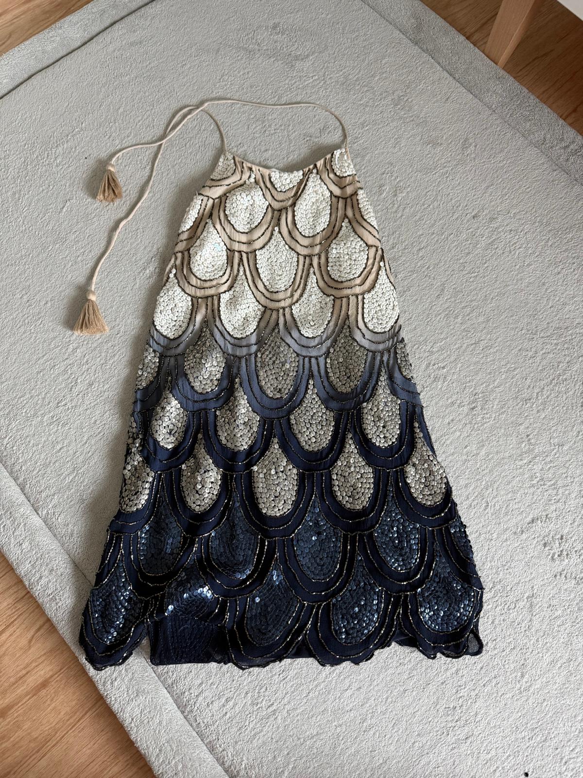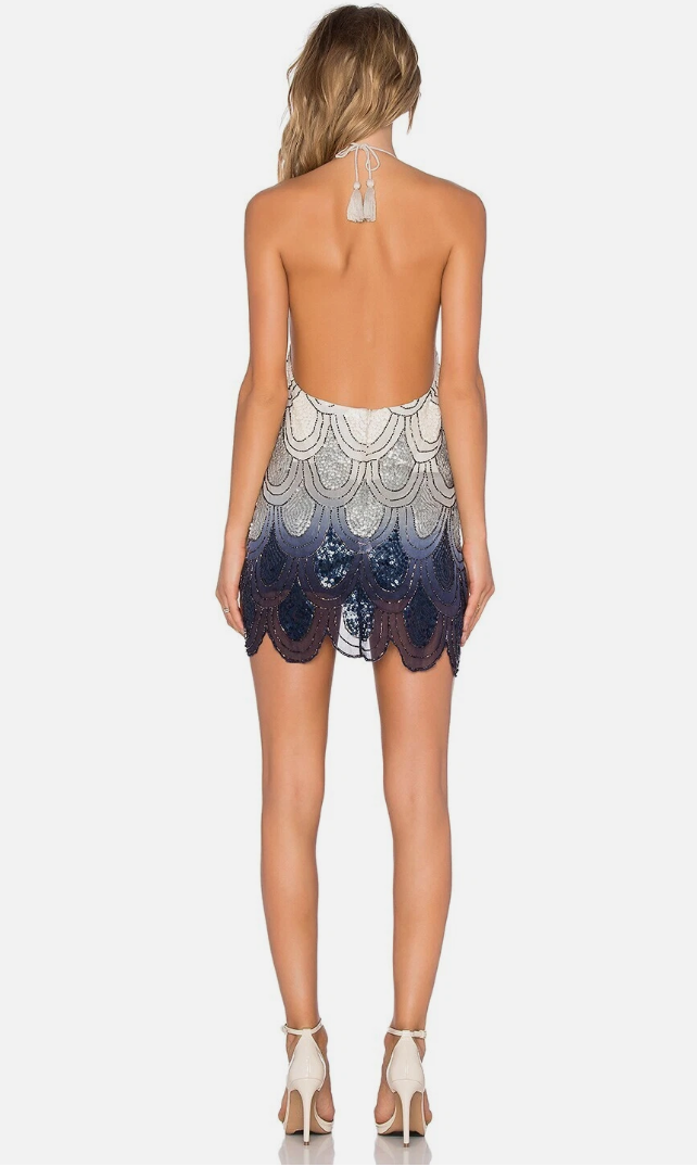 Description: Blue and white ombre sequin halterneck dress by NBD Excellent condition, size S