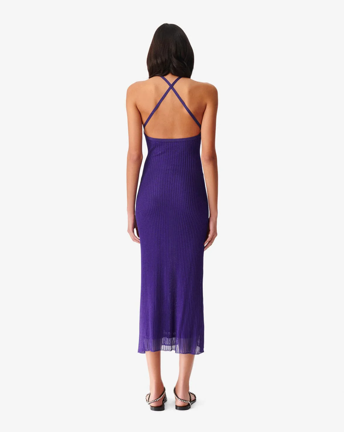 Description: Charisa Dress in Viola viscose, round neck, sleeveless, wrap style, ribbed edges, side split, 100% Viscose
