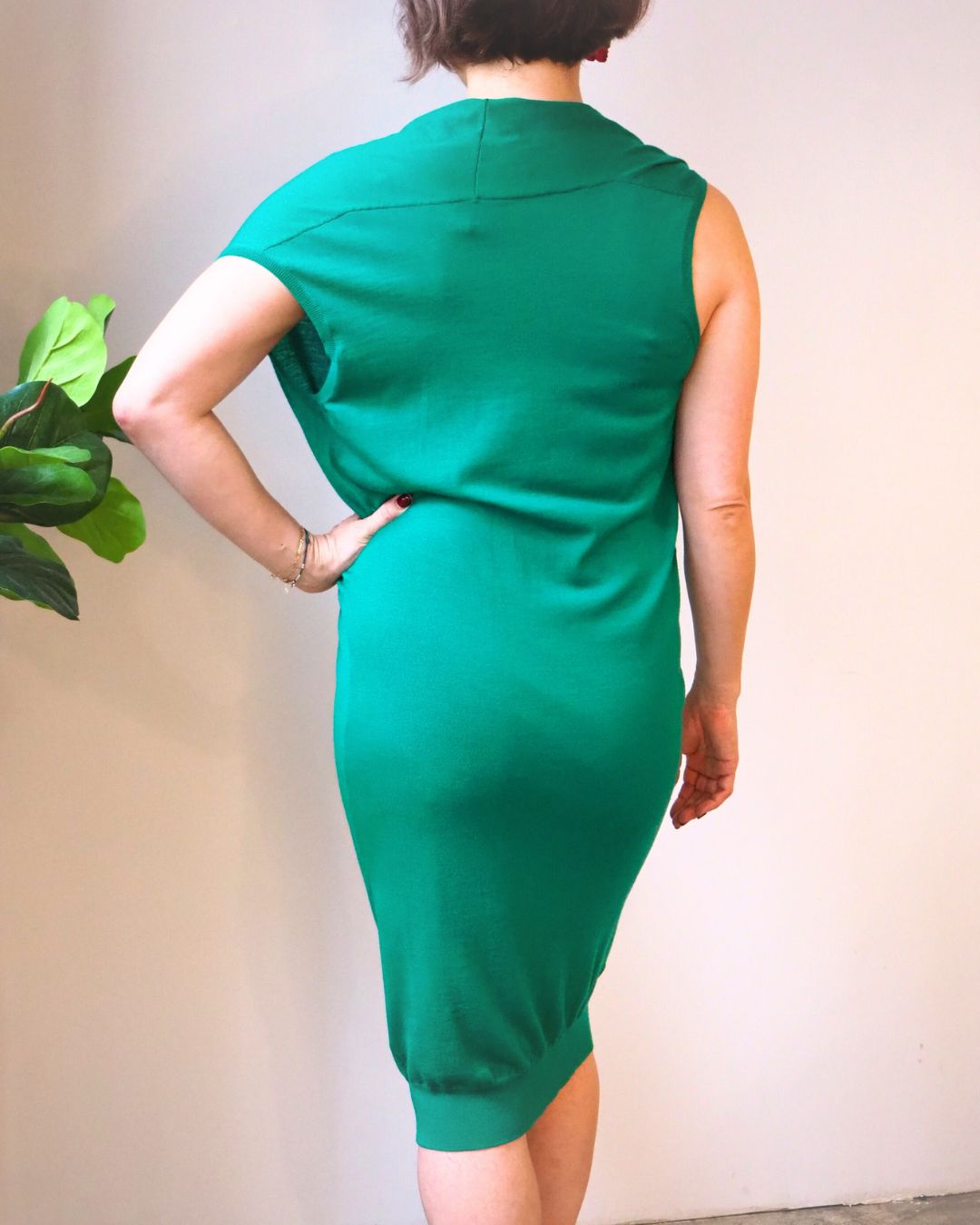 Description: Lanvin Kelly Green Cowl Neck Cashmere Dress Sleeveless, ‘slack’ light knit cashmere dress