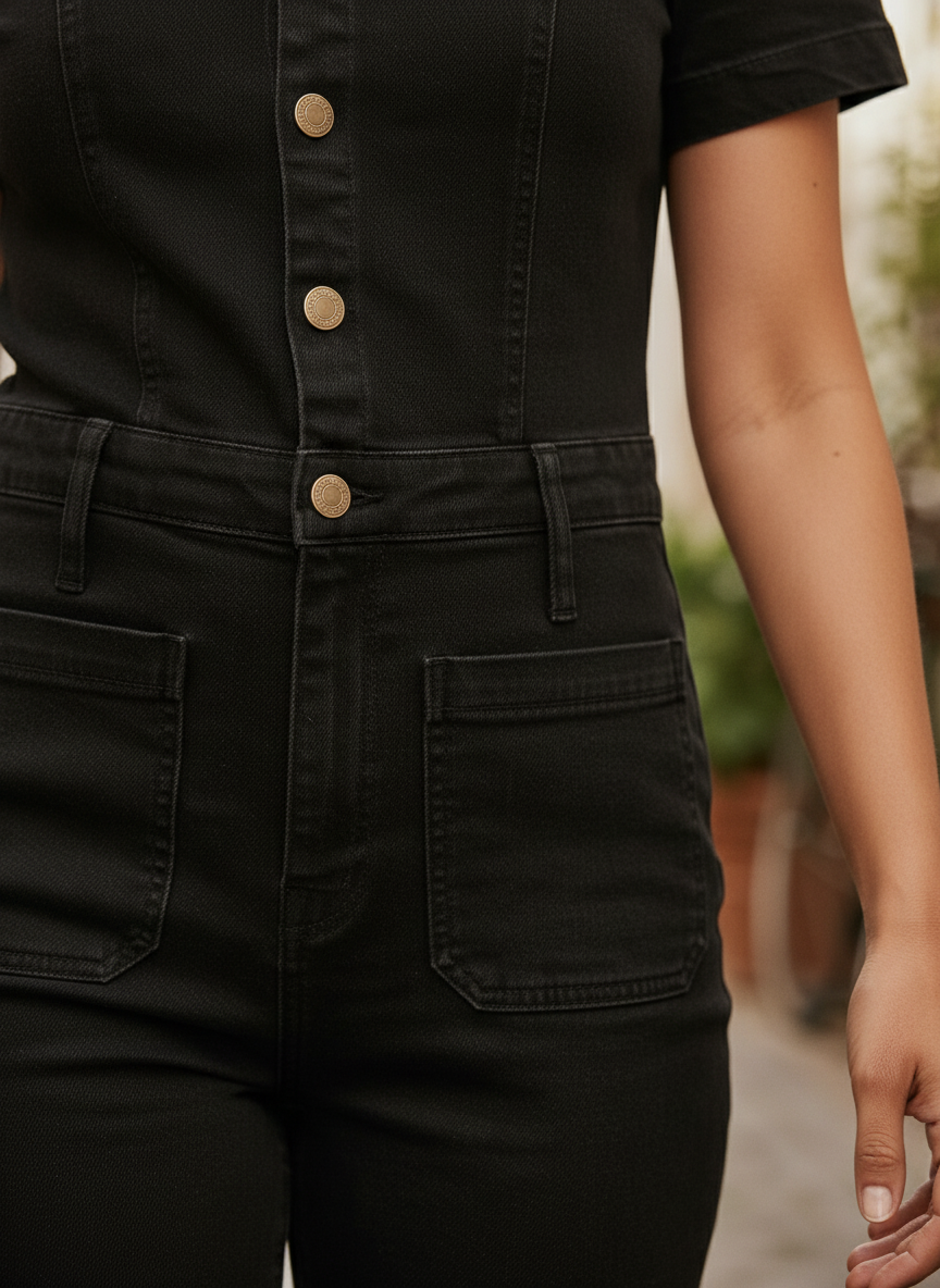 Description: Show Me Your Mumu Black Denim Jumpsuit