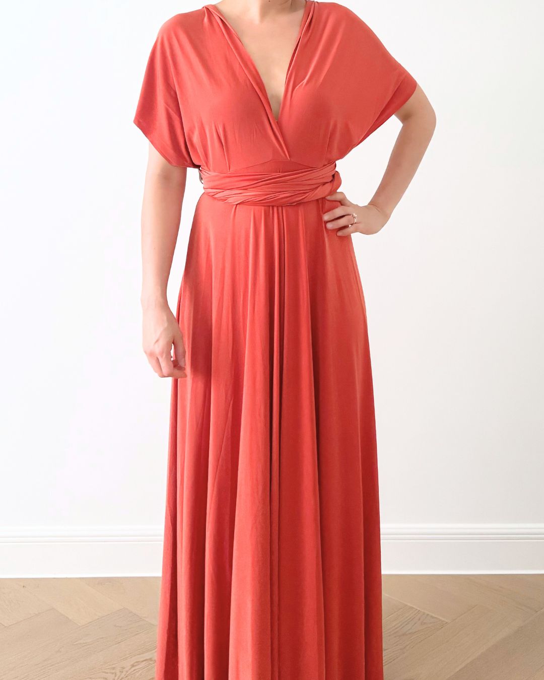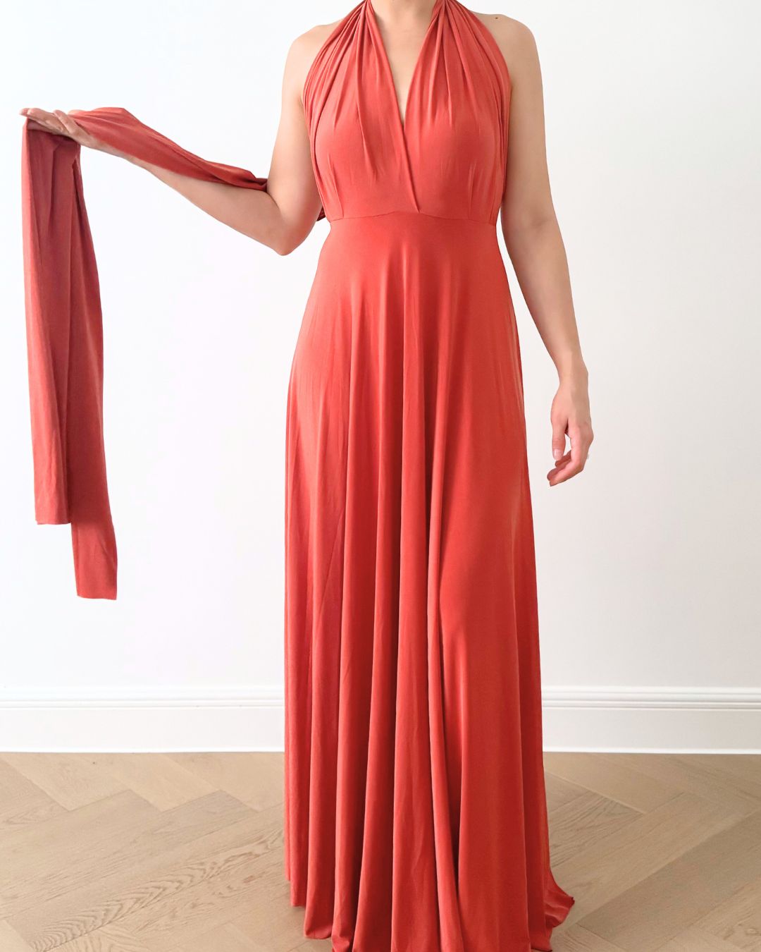 SaveDescription: Multi Red Long Dress - wear in 3 ways. S/M