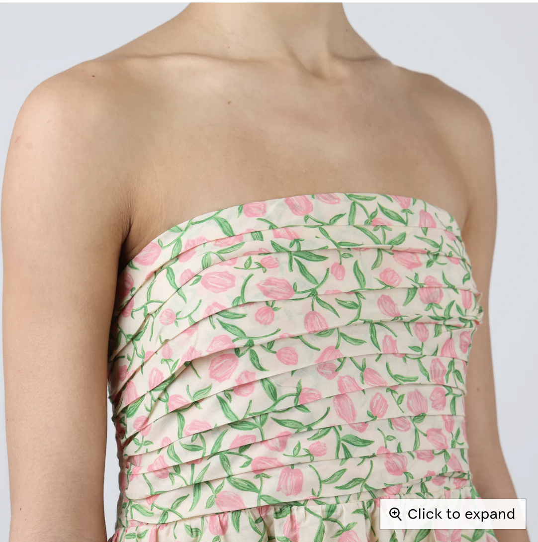 SaveDescription: Kitri Dress, Excellent Condition. - Midi dress with straps that can be removed to make it strapless - Pink and green floral pattern - Elasticated back Fabric: Cotton