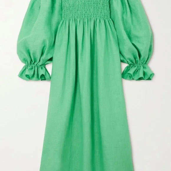 SaveDescription: Sleeper Atlanta Midi linen dress in green. Fits S-L