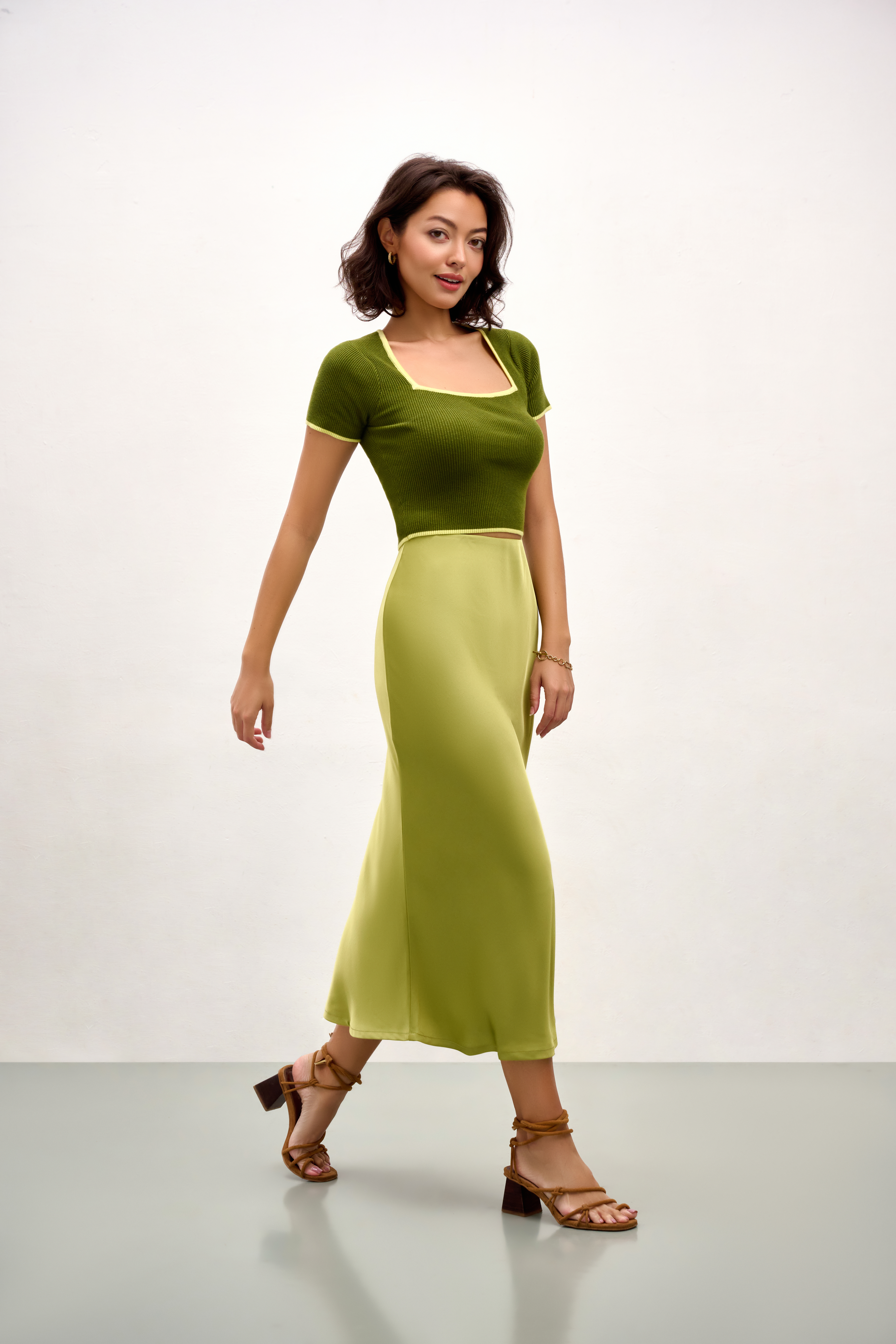 Description: Ella Square Neck Top - Green