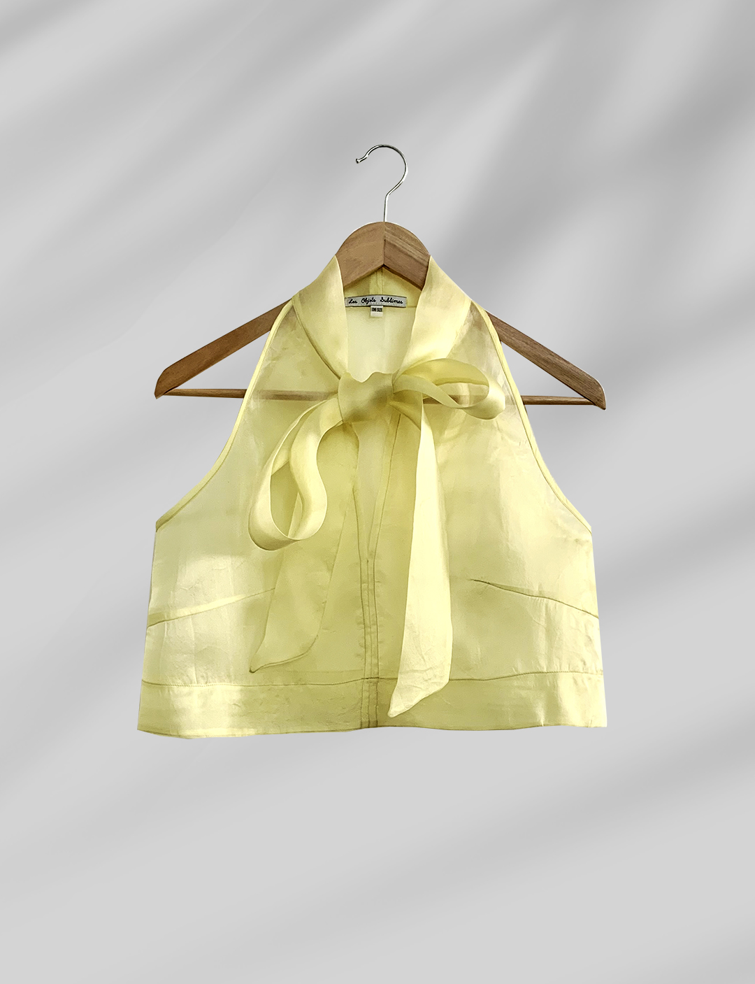 SaveDescription: An elegant silk organza top is a part of a mix and match collection. It can be easily worn with Les Objets Sublimes bra top or a slip dress of a matching color. Mix it with your wardrobe pieces to create a unique look and express your individuality. Due to the hygienic reasons, we cannot put the underwear for rent. You can enhance your look by purchasing a matching bralette from Les Objets Sublimes website directly: https://lesobjetssublimes.com/collections/underwear Details: - Decorative bow on the front - Free fit - Halter neck - Sleeveless - Height: 45cm Material: 100% Silk Size: One size that fits from S to L Wash and Care: Hand wash in cold water with a delicate soap, then dry in the shadow. Dry clean is another option. Then iron the garment with steam on silk low temperature or use a steamer. Made in Bali