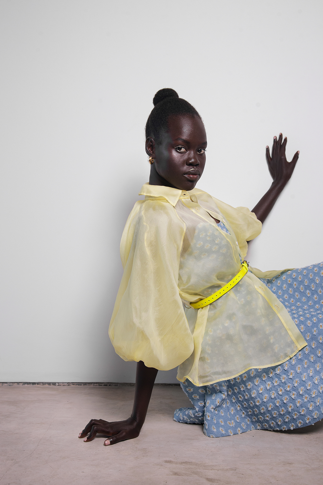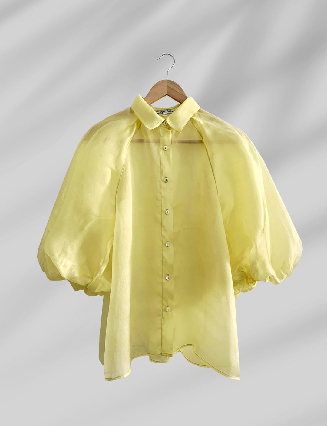 SaveDescription: This silk organza blouse is a Les Objets Sublimes hero piece, from which the brand has started. It is a day to night outer layer designed to express your individuality. Wear it to the office with a solid top underneath and a pair of pants or to a party with Les Objets Sublimes bra and a mini skirt. With its unique design and the puff sleeves you will become a center of attention. Due to the hygienic reasons, we cannot put the underwear for rent. You can enhance your look by purchasing a matching bralette from Les Objets Sublimes website directly: https://lesobjetssublimes.com/collections/underwear Details: - Free fit - Colar neck - Mother of pearls buttons in front - Puff sleeves - Height: 67cm Material: 100% Silk Size: One size that fits from S to L Wash and Care: Hand wash in cold water with a delicate soap, then dry in the shadow. Dry clean is another option. Then iron the garment with steam on silk low temperature or use a steamer. Made in Bali
