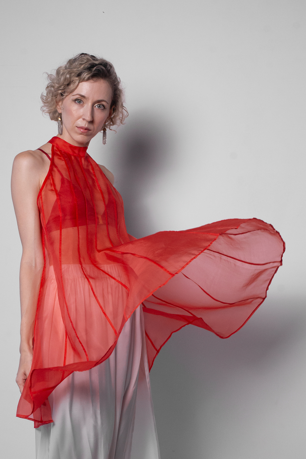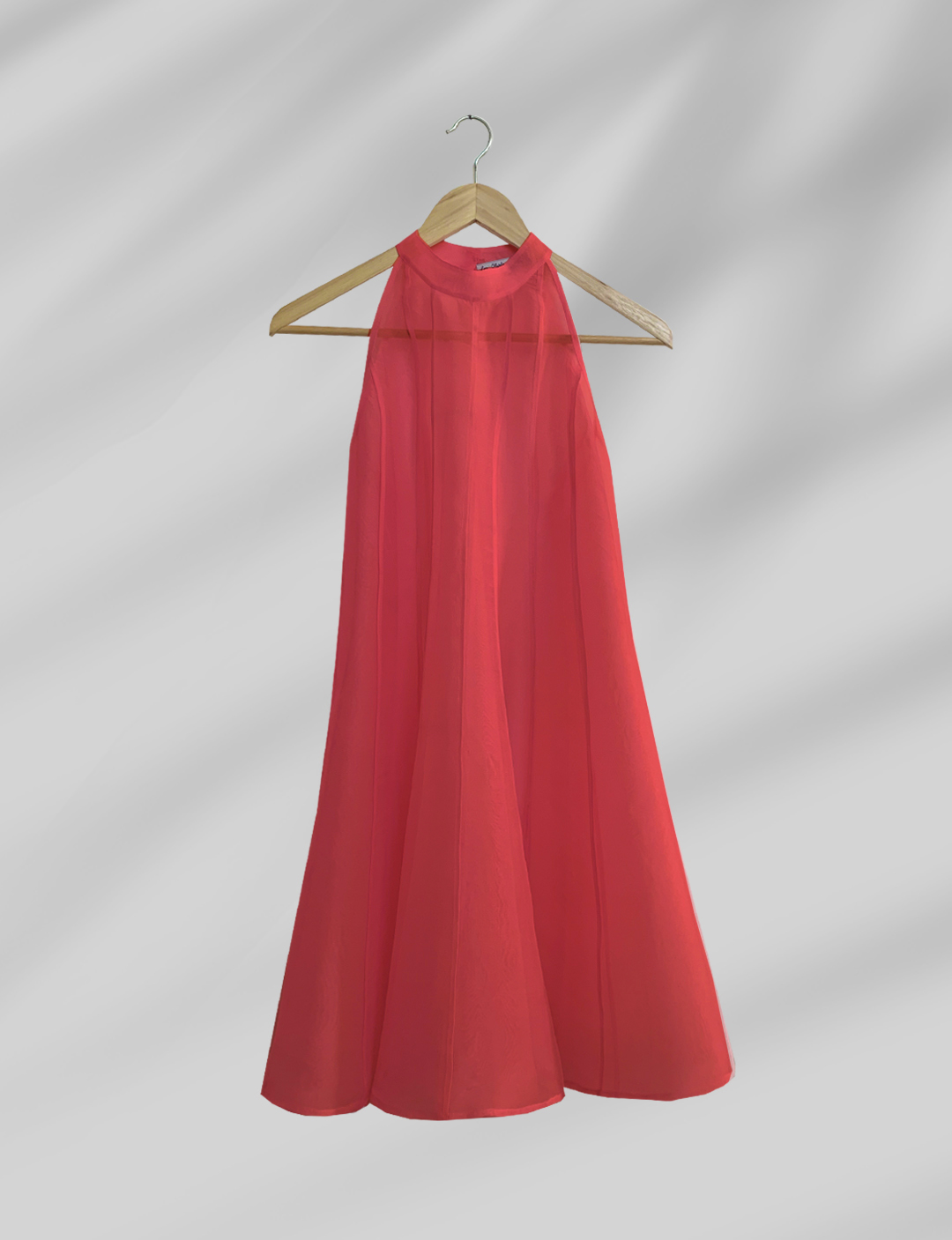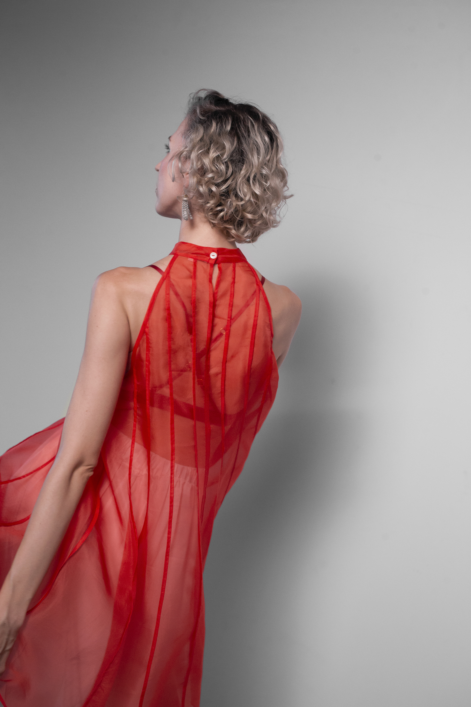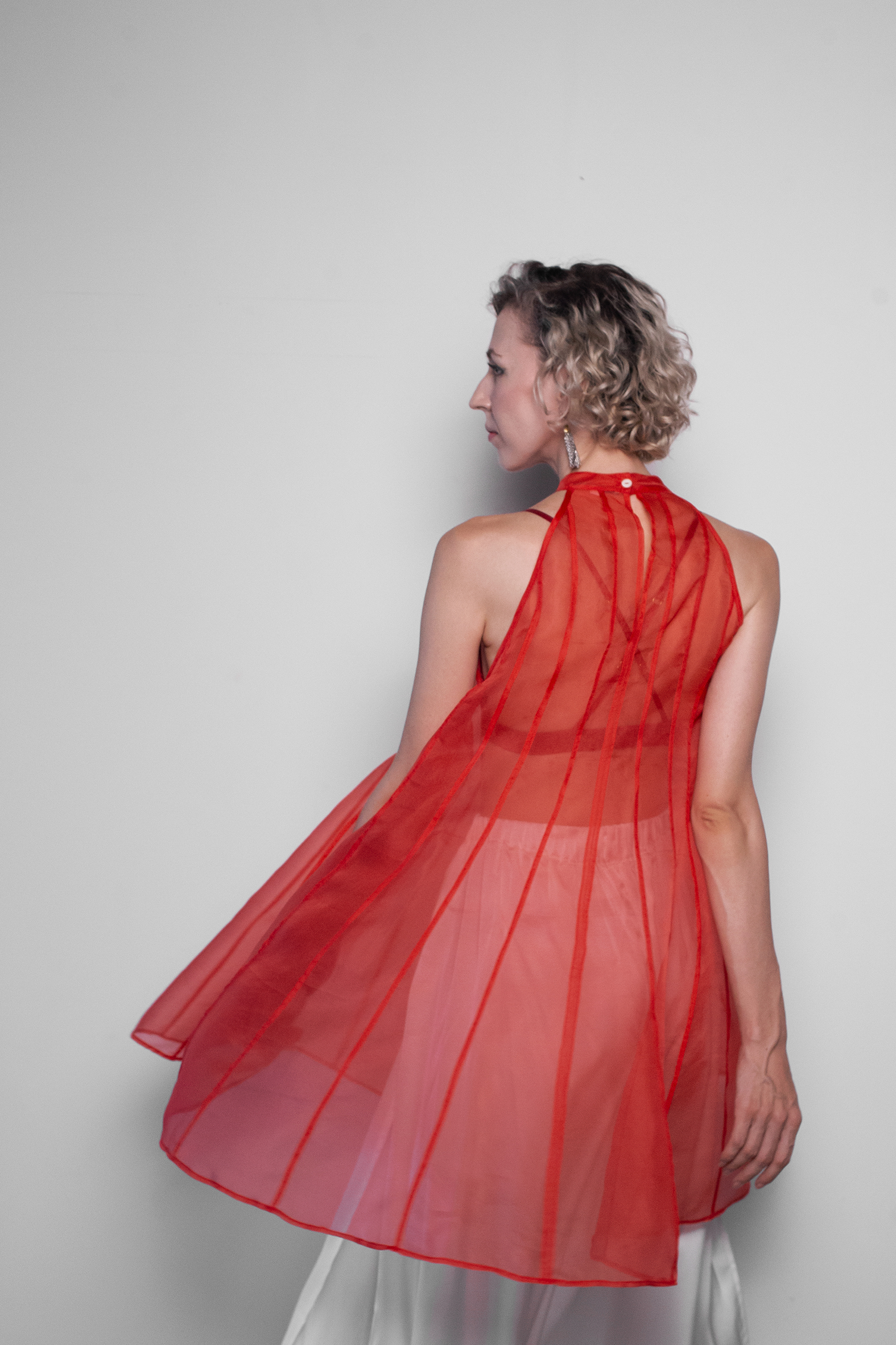 SaveDescription: This flare dress in organza is a song for femininity. Perfect for a party or for a date night. The structural seams running down the dress juxtapose to its light fabric to create an elegant, yet a bold look. An ode to the Architecture, from where Les Objets Sublime come. Wear it with our slip dress or with an underwear set. Due to the hygienic reasons, we cannot put the underwear for rent. You can enhance your look by purchasing a matching slip dress from Les Objets Sublimes website directly: https://lesobjetssublimes.com/collections/silk-slip-dress For a more edgy look check our underwear sets: https://lesobjetssublimes.com/collections/underwear Details: - Free fit - Flare shape - Halter neck - Mother of pearl button at the back - No sleeves - Height: 89cm Material: 100% Silk Size: One size that fits from S to L Wash and Care: Hand wash in cold water with a delicate soap, then dry in the shadow. Dry clean is another option. Then iron the garment with steam on silk low temperature or use a steamer. Made in Bali
