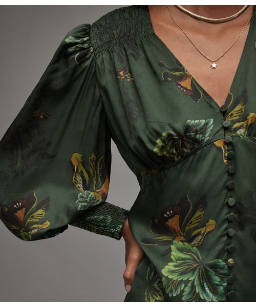 All Saints dark green long sleeved dress