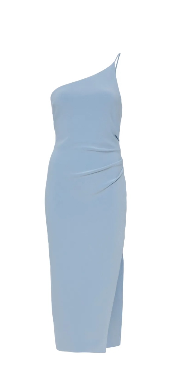 SaveDescription: Nala one-shoulder midi dress •Powder blue •Stretch-design •One-shoulder •Side slit •Mid-length