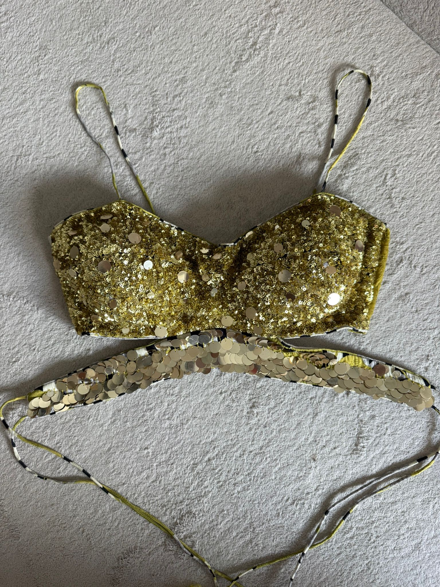 Description: Embroidery : Sequins, Coins Fabric : Crepe Colors : Green No. Of Components : 2 Contents : Blouse, Saree Neckline : Sweetheart Sleeves : Sleeveless Model Height : 5"7 Can-Can : No Blouse Padding : Yes Care : Dry Clean Only