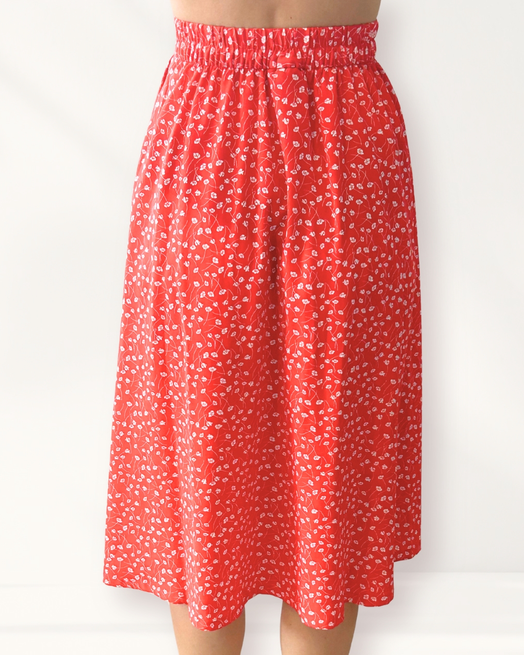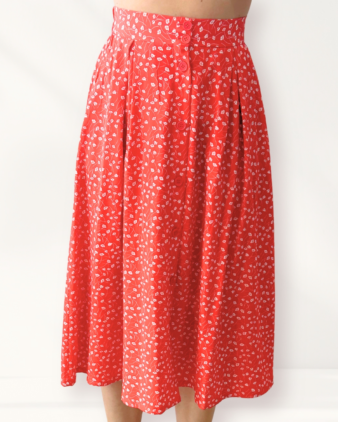 Description: Monki Red Skirt - buttons at front